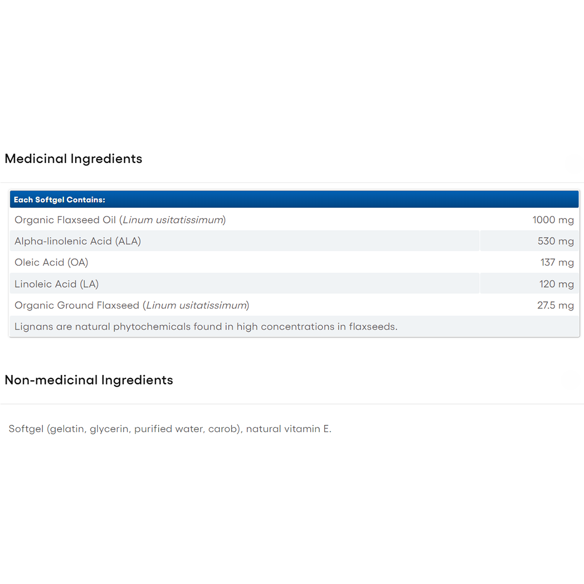 Natural Factors Organic Omega Factors Flaxseed Oil 1000mg 180 Softgels