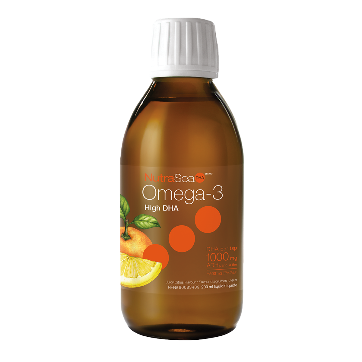 You'll enjoy the clean, light taste of NutraSea DHA premium quality high DHA liquid omega-3, in a delicious juicy citrus flavour, with no fishy burp-back. With its high DHA ratio of 500 mg EPA and 1000 mg DHA per dose, NutraSea DHA is an easy way to get your high DHA omega-3 and is a great choice for anyone looking for a pure omega-3.