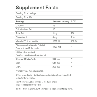 Natural Factors Rx Omega-3 Maximum Triple Strength 900mg With Vitamin D3 150 Softgels