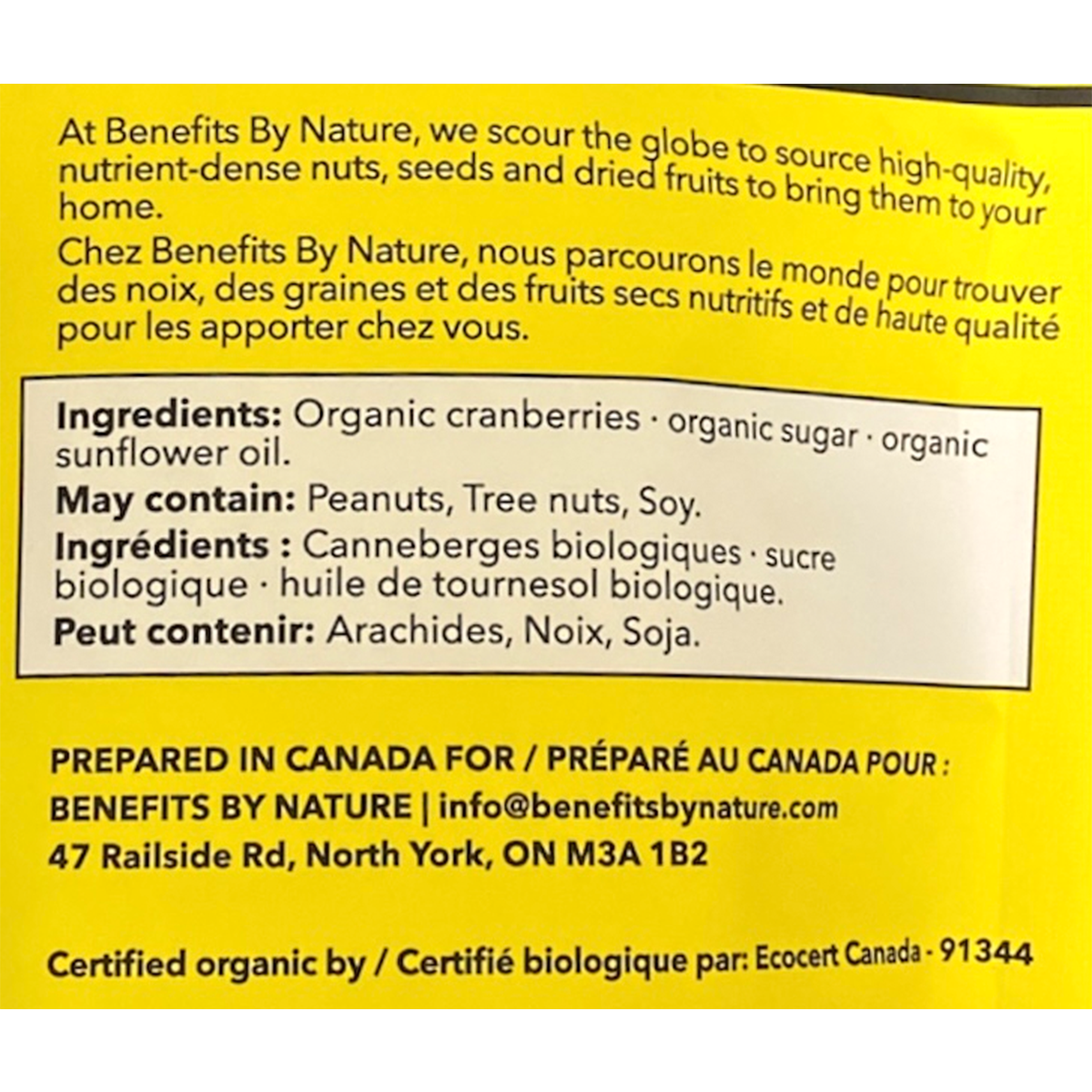 Organic cranberries organic sugar, organic sunflower oil.