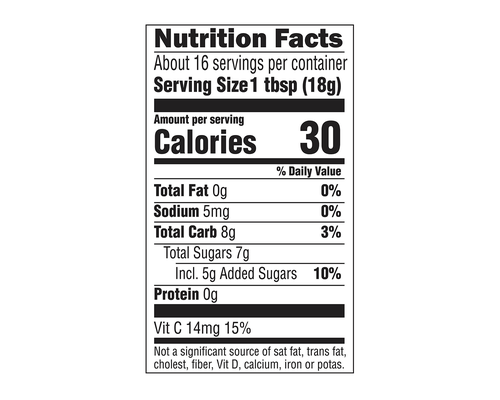 98% of this peachy-pink spread is in two ingredients, ensuring it has the sunbaked flavor of a ripe, summer’s day. The berries we use are slightly smaller than the grocery store version, so the little seeds you see are a delicate addition to the slightly chunky texture. Finished off with concentrated apple juice, this spread is a full fruit delight.