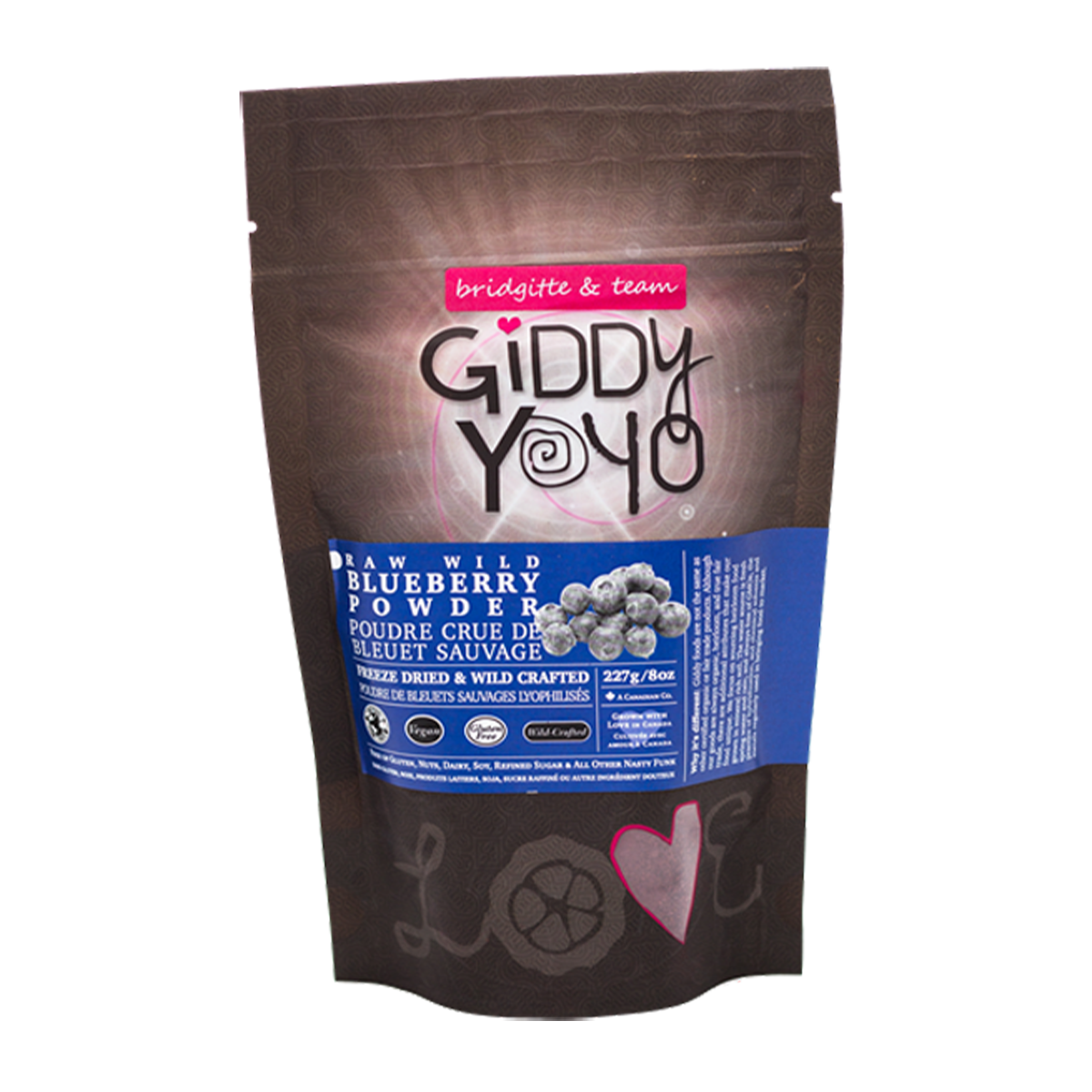 Giddy Yo blueberry Powder is made from the whole ripened wild blueberries from Nova Scotia. The blueberries are dried utilizing a proprietary process that’s gentle and nutrient preserving. Not to be confused with their cultivated cousins, the wild variety contains abundant antioxidants, vitamins & minerals! Our supplier is globally certified.