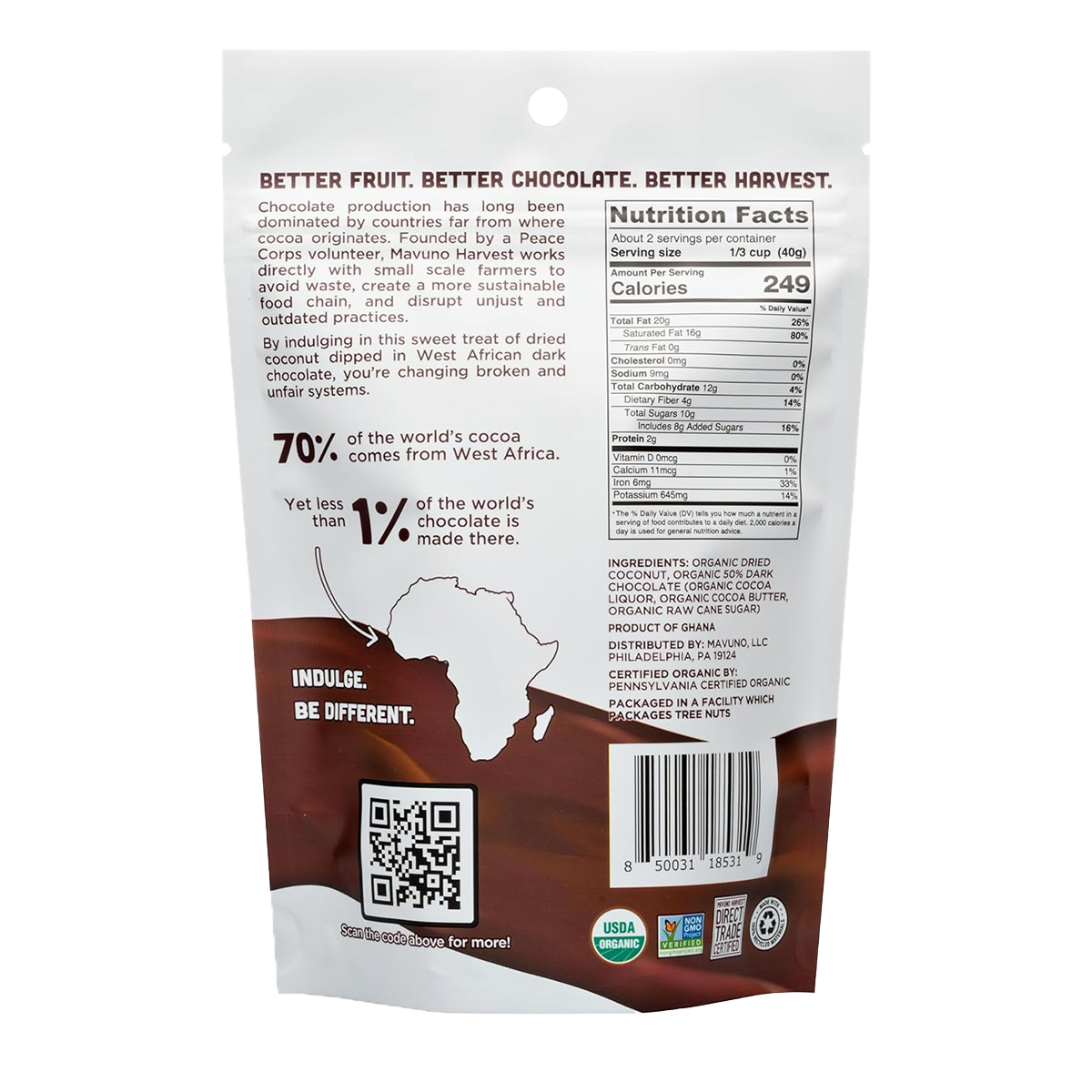 Mavuno Harvest Organic Dried Coconut Dark Chocolate Dipped 84g