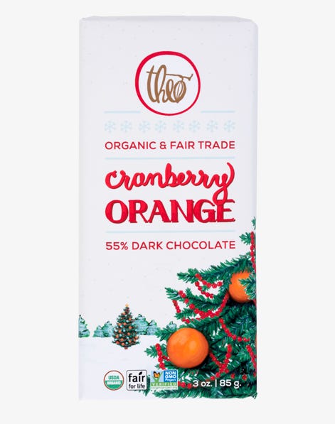 Sweet citrus and tart cranberry flourish in rich and creamy 55% dark chocolate – a new holiday favourite.
