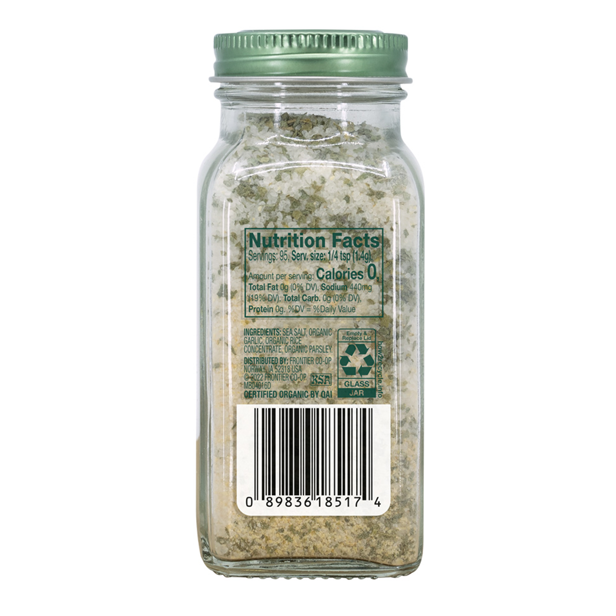 Sea Salt, Organic Garlic, Organic Rice Concentrate, Organic Parsley.