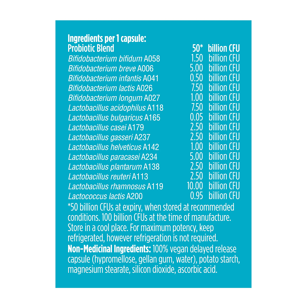 *Guaranteed 50 billion CFUs at expiry, when stored at recommended conditions. 125 Billion CFUs at the time of manufacture. Store in a cool place. For maximum potency, keep refrigerated, however, refrigeration is not required.