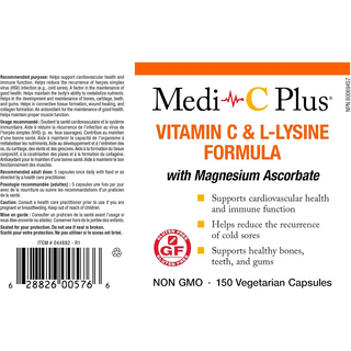 Medi C Plus Vitamin C & L-Lysine Formula With Magnesium Ascorbate 150 Veggie Caps