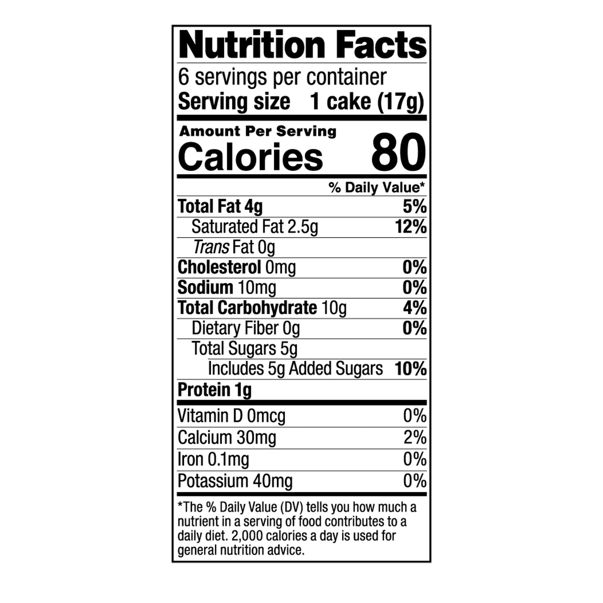 Serving size 1 cake (17g)