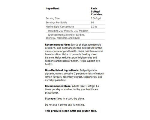 Source of eicosapentaenoic acid (EPA) and docosahexaenoic acid (DHA) for the maintenance of good health. Helps maintain normal brain function. Helps to promote healthy mood balance. Helps reduce serum triglycerides and Aid cardiovascular health. Helps Aid eye health.