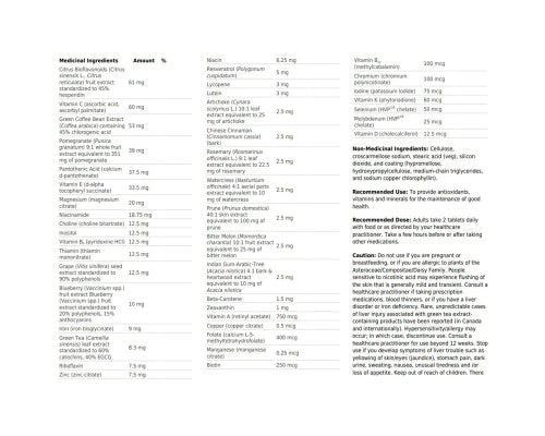 Do not use if you are pregnant or breastfeeding, or if you are allergic to plants of the Asteraceae/Compositae/Daisy Family. People sensitive to nicotinic acid may experience flushing of the skin that is generally mild and transient. Consult a healthcare practitioner if taking prescription Health Products, blood thinners, or if you have a liver disorder or iron deficiency. Rare, unpredictable cases of liver injury associated with green tea extract-containing products have been reported (in Canada and internationally). Hypersensitivity/allergy may occur; in which case, discontinue use. Consult a healthcare practitioner for use beyond 12 weeks. Stop use if you develop symptoms of liver trouble such as yellowing of skin/eyes (jaundice), stomach pain, dark urine, sweating, nausea, unusual tiredness and /or loss of appetite. Keep out of reach of children. There is enough iron in this package to seriously harm a child. Do not use if perma seal is missing.