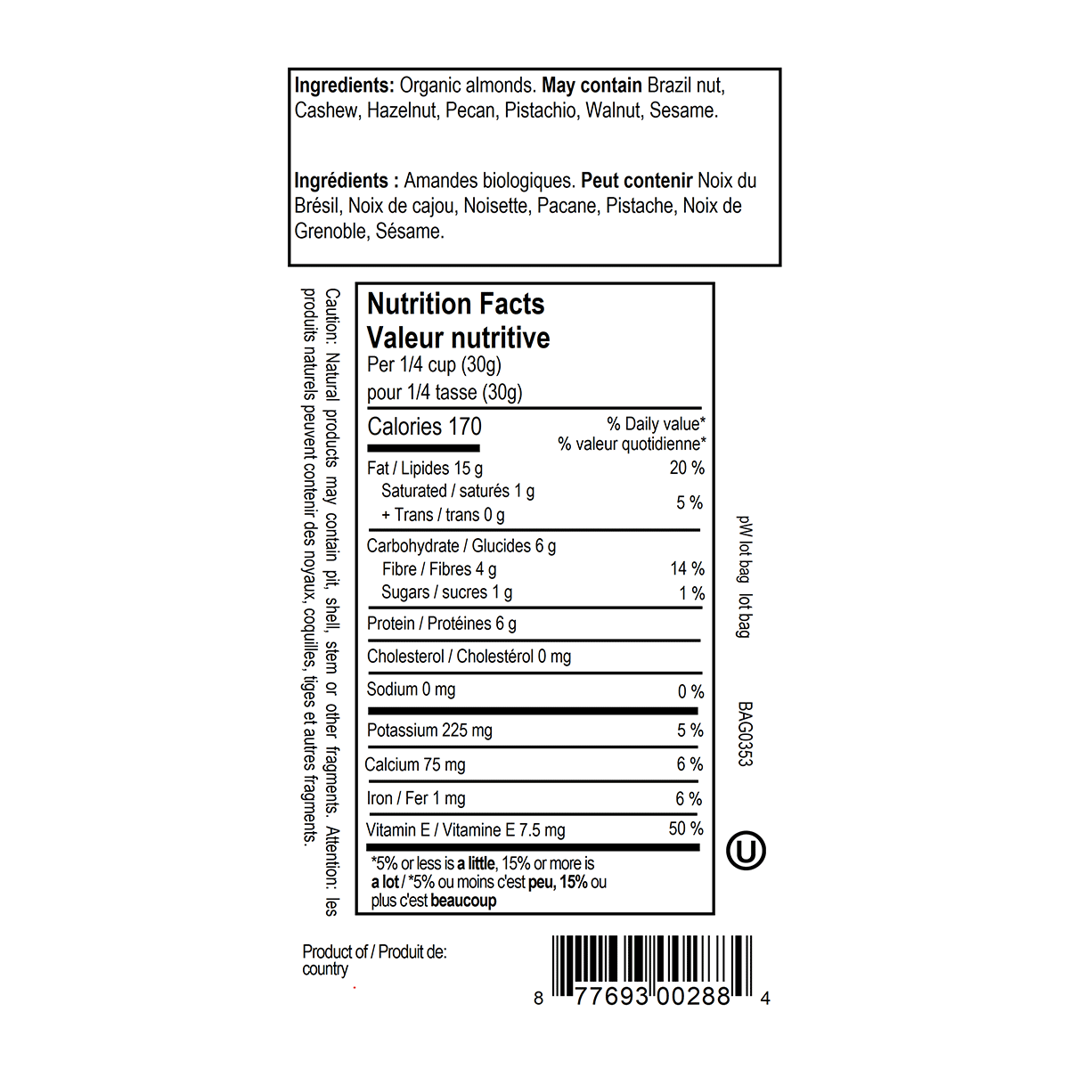 Prana Organic Almonds 200g