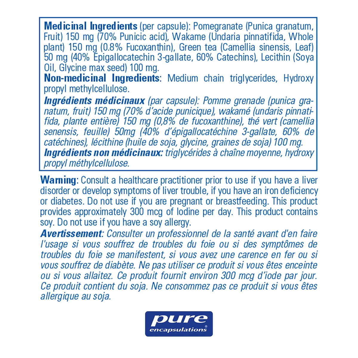 • Contains a blend of pomegranate, wakame, green tea, and soy lecithin phospholipids