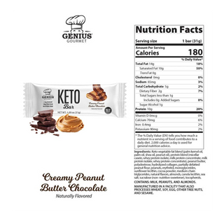 Genius Gourmet Keto Bar Creamy Peanut Butter Chocolate 31g