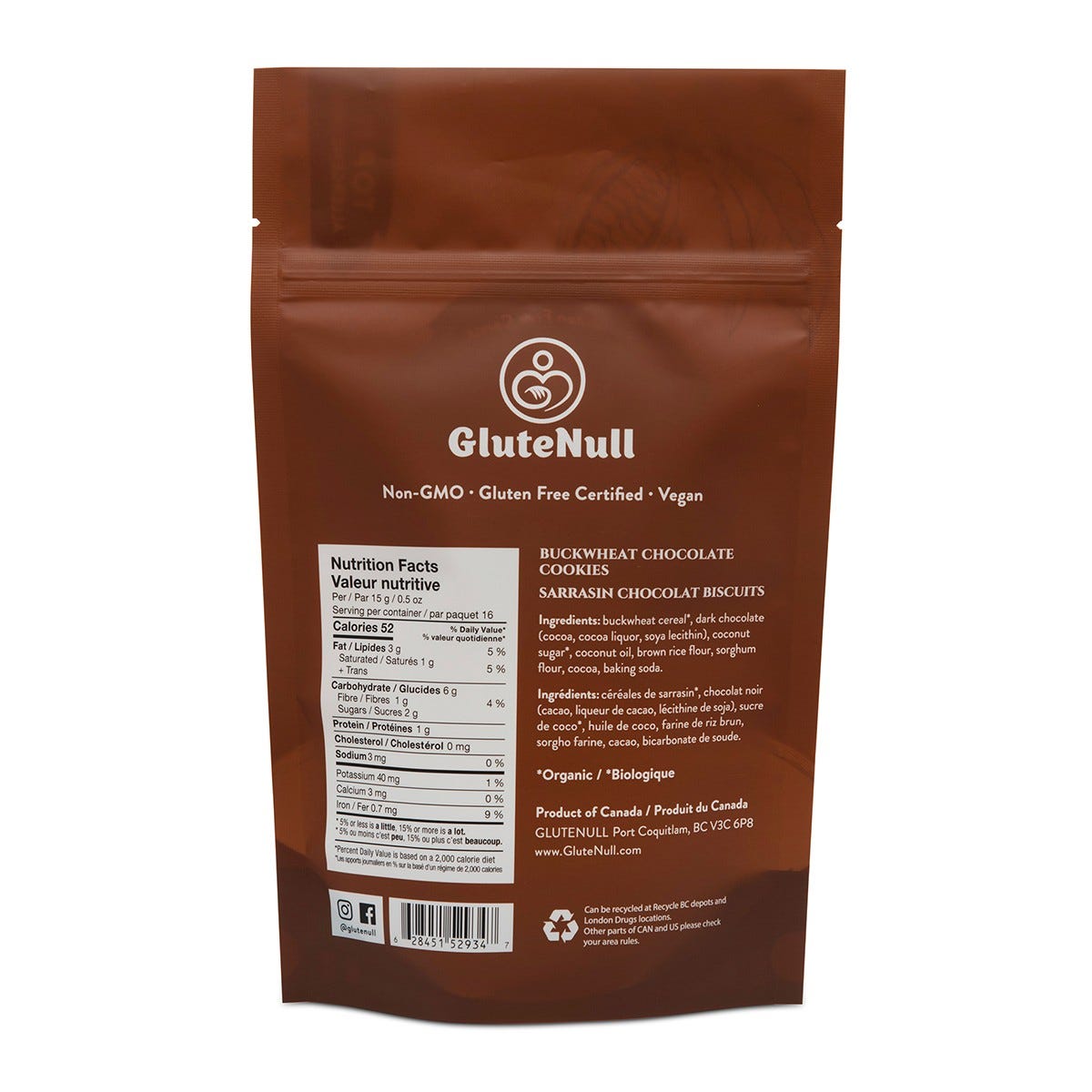 They are made with nutrient-dense organic buckwheat cereal, low glycemic coconut sugar, and dark chocolate chips. These cookies are very well balanced in flavor and the answer for all chocoholics!