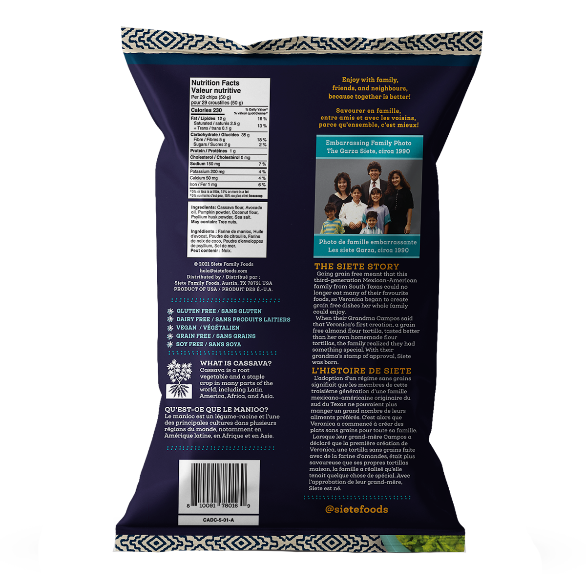 Ever broken your chip in a dip before? Or watched in dismay as half of your chip fell back to your loaded-nachos plate? Yeah, it’s kind of guac-ward. These grain free tortilla chips are exactly what they sound like: a thick chip built to withstand even the heartiest of dips. Made from the same savory pumpkin and cassava masa as this taco shells, but they resemble traditional restaurant-style tortilla chips. So nice, you might even dip it twice.