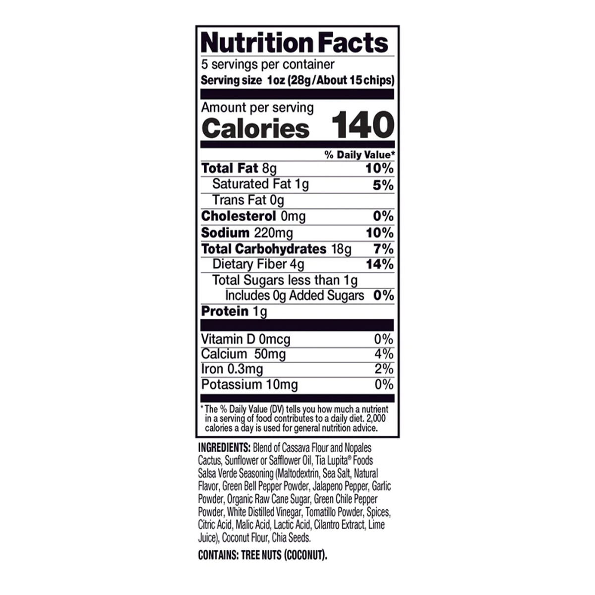 Tia Lupita Foods Cactus Tortilla Chips Grain Free Salsa Verde 141g