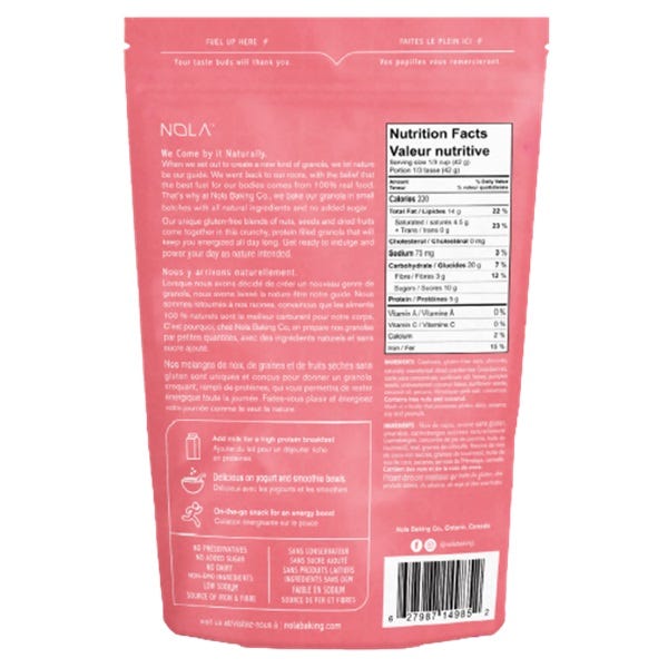 Granola nut clusters made with cashews, almonds, gluten-free oats and naturally sweetened cranberries.