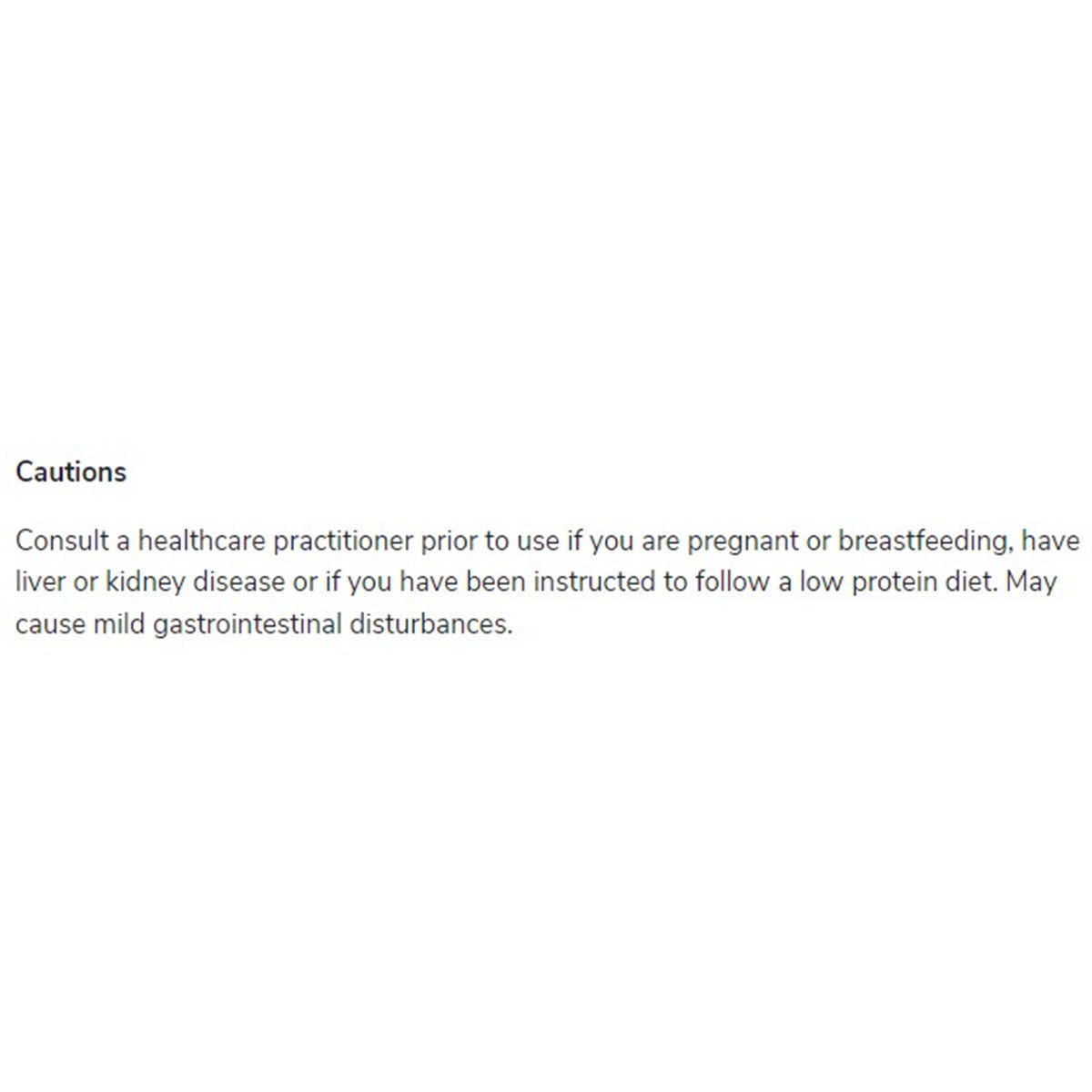 Consult a healthcare practitioner prior to use if you are pregnant or breastfeeding, have liver or kidney disease or if you have been instructed to follow a low protein Nutrition Plan. May cause mild gastrointestinal disturbances.