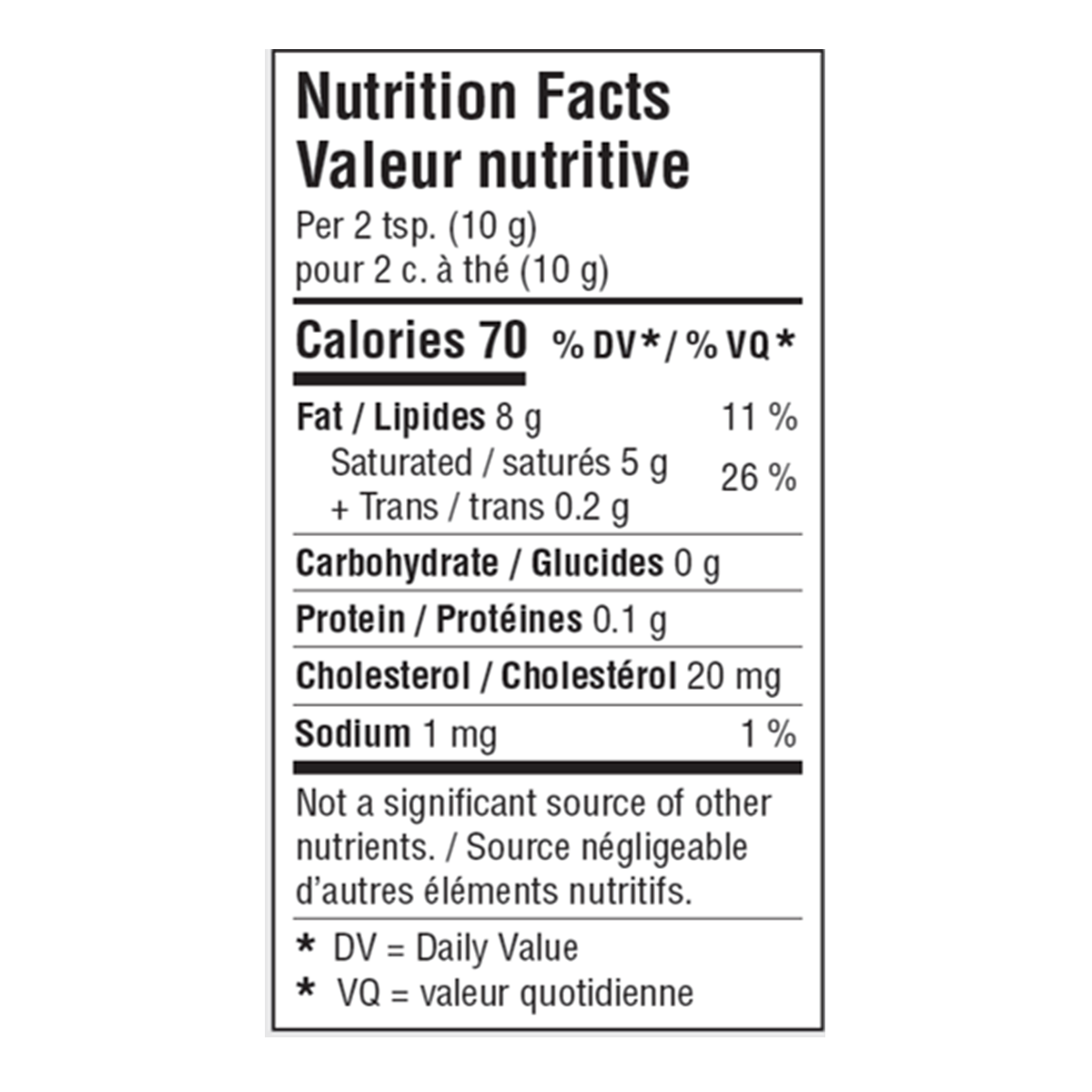 Saturated / saturés 5 g + Trans / trans 0.2 g
