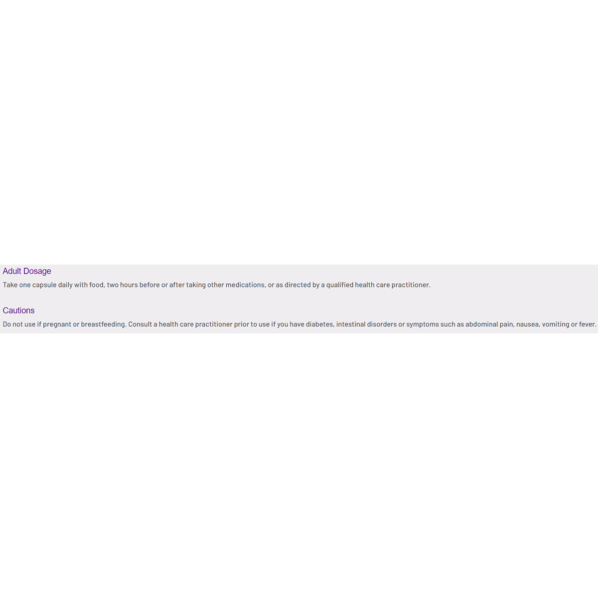 Take one capsule daily with food, two hours before or after taking other Health Products, or as directed by a qualified health Wellness-Care practitioner.