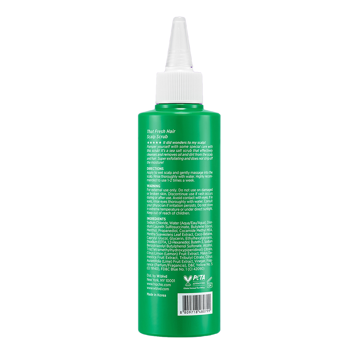A refreshing scalp scrub with a cool herbal forest scent and the sweet fragrance of green apples