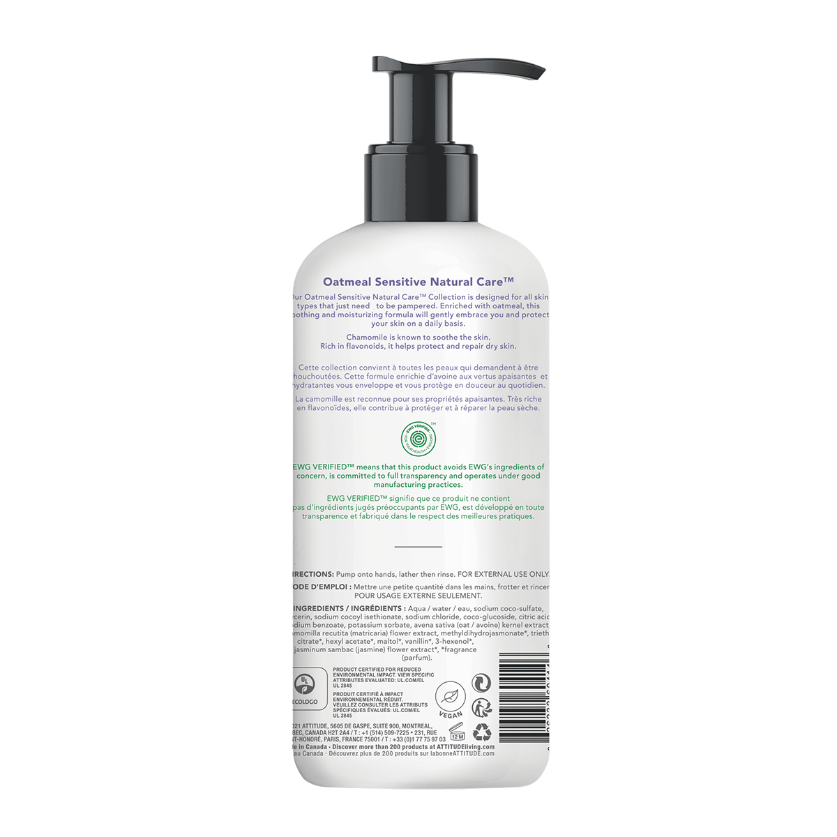 ATTITUDE's Soothing and Calming Natural Hand Soap, bears the EWG VERIFIEDTM seal, is hypoallergenic and has been dermatologically tested. This plant- and mineral-based vegan formula is extra gentle and ideal for deep and gentle cleansing of delicate skin, while leaving hands clean and hydrated. Plus, it's infused with chamomile and oat extracts to stimulate your senses and soothe your sensitive skin, making it perfect for frequent use.