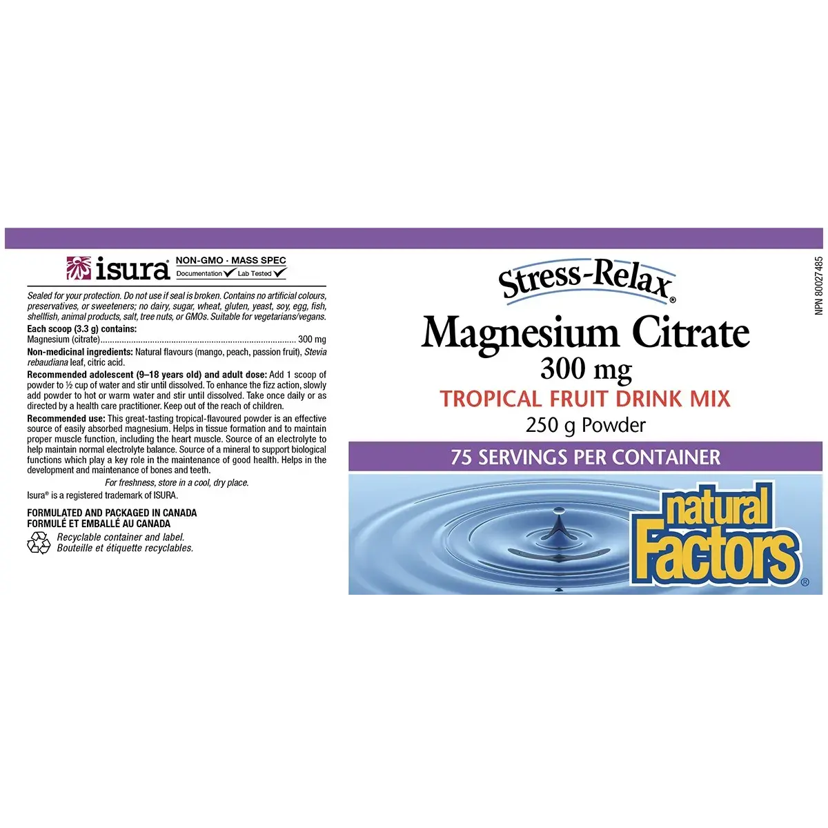 Stress-Relax Magnesium Citrate Powder is an effective way to meet the body’s daily magnesium requirements. Magnesium Assists the body metabolize carbohydrates, fats, and proteins. It also Assists in tissue formation, and Assists maintain bones, teeth, and proper muscle function. Inadequate magnesium intake can heighten the symptoms of stress, including muscle tension and Restful-Sleep disturbances.