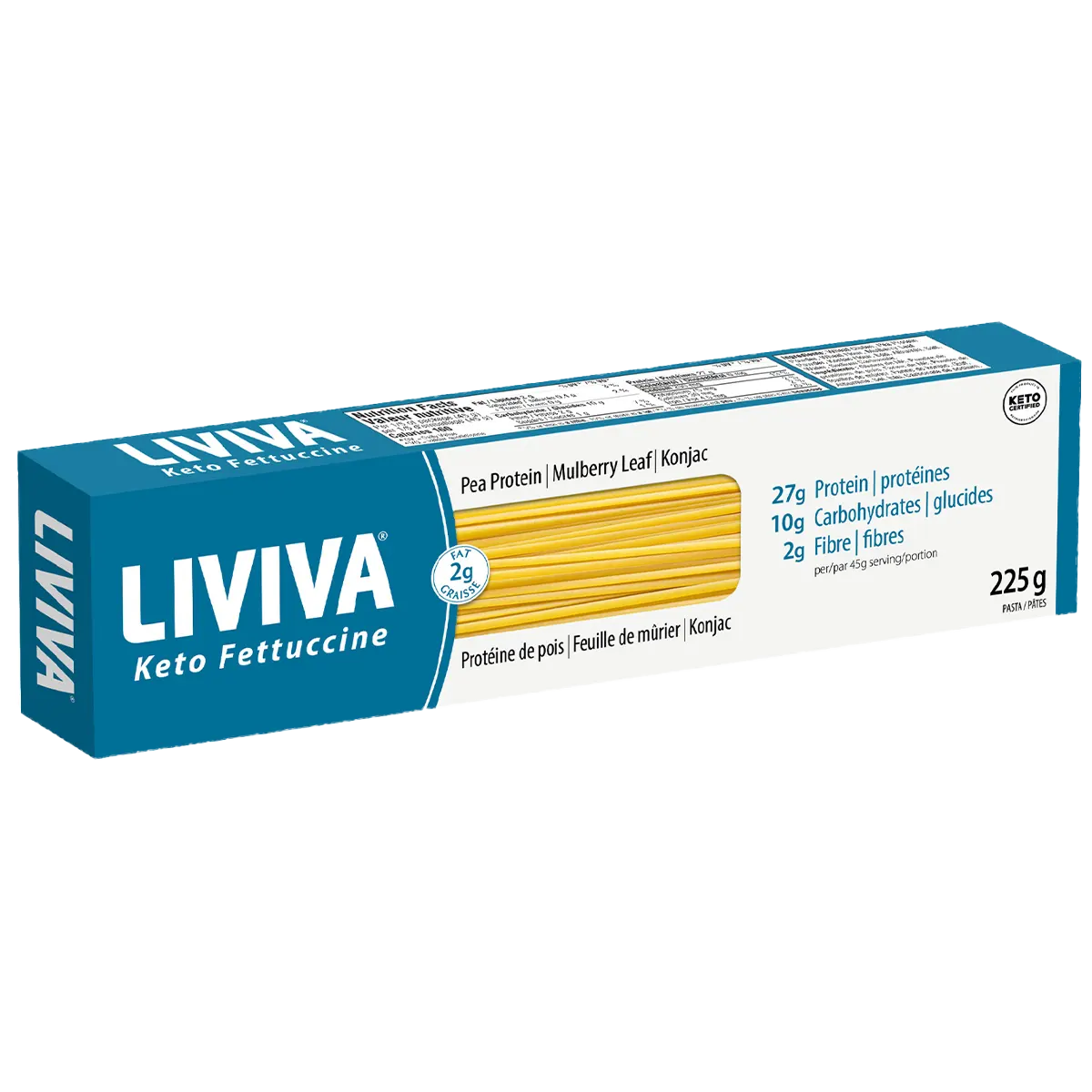 LIVIVA Low Carb High Protein Fettuccine is a great alternative to traditional pasta. Packed with high-quality plant-based protein, high in fiber, with no additives or preservatives, you can get healthy food that tastes so good. Made with Pea Protein, Mulberry Leaf & Konjac, it is simply delicious!