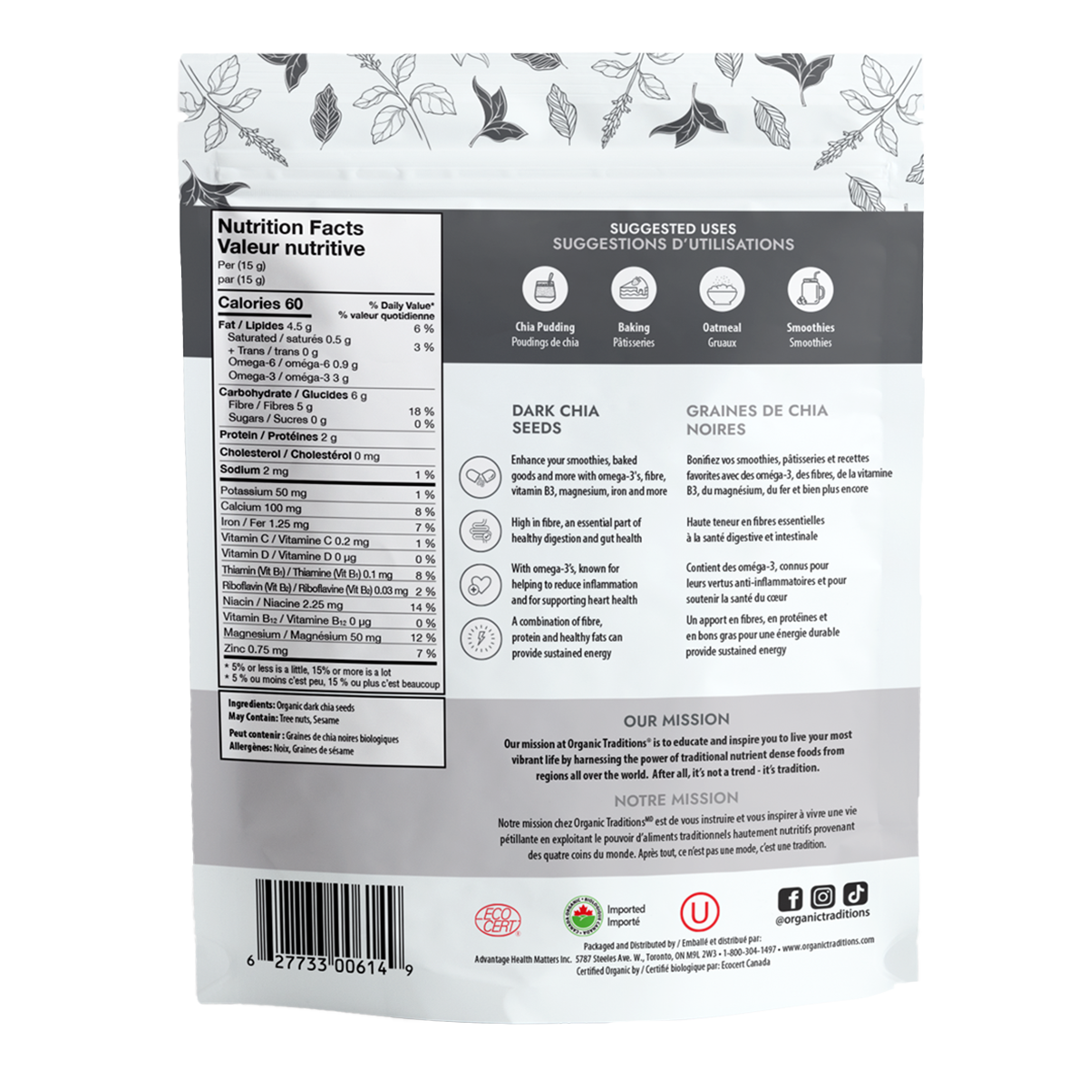 Organic Traditions Dark Chia Seeds 454g