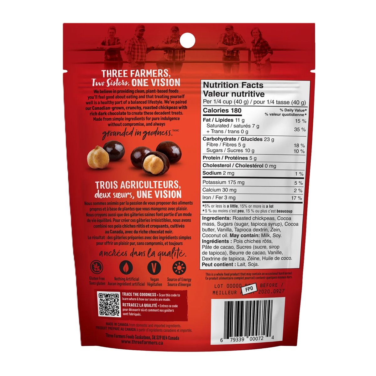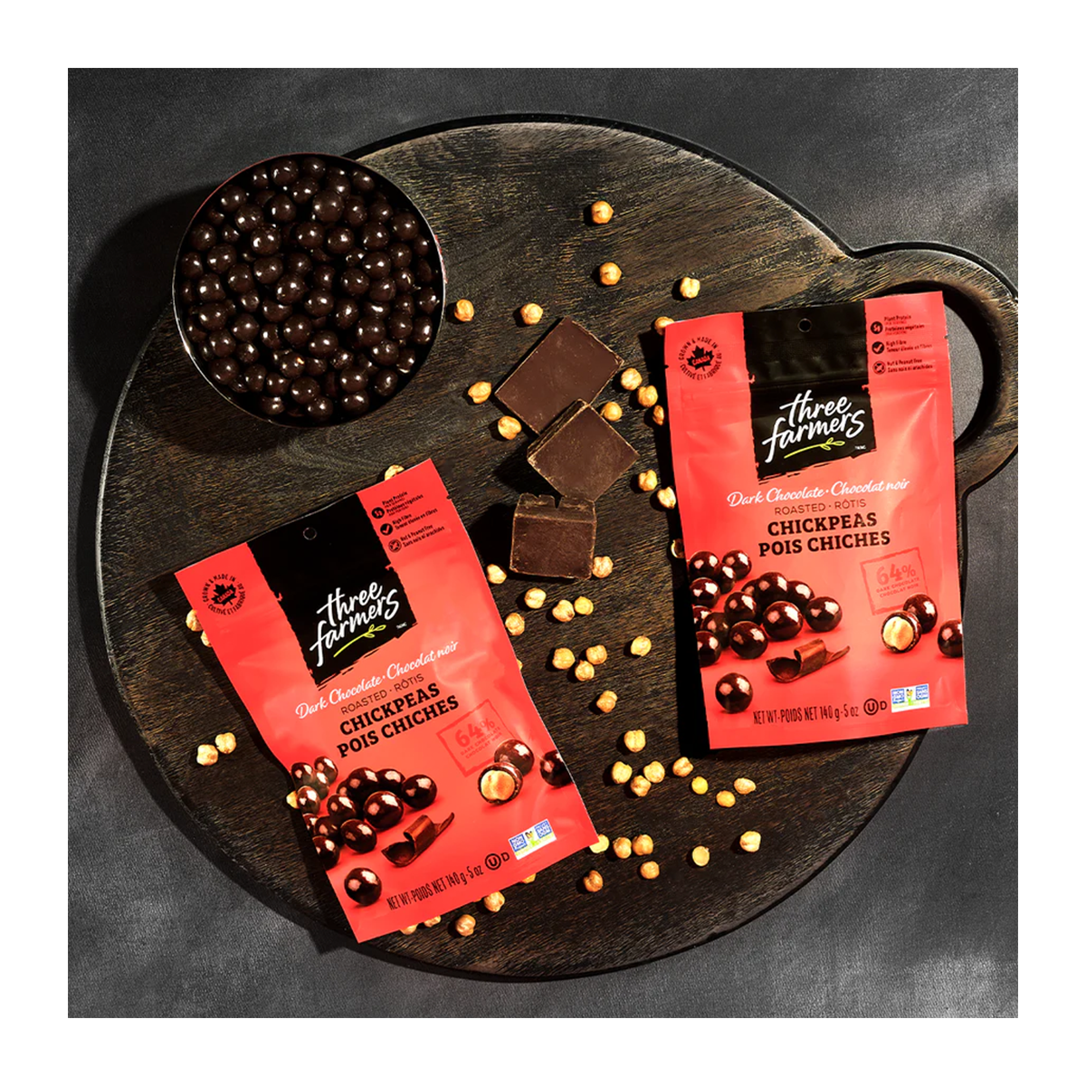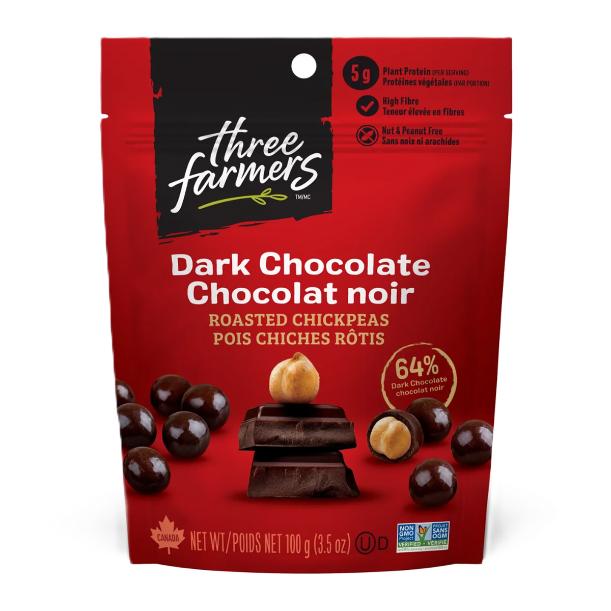 Three Farmers Roasted Chickpeas Dark Chocolate 100g