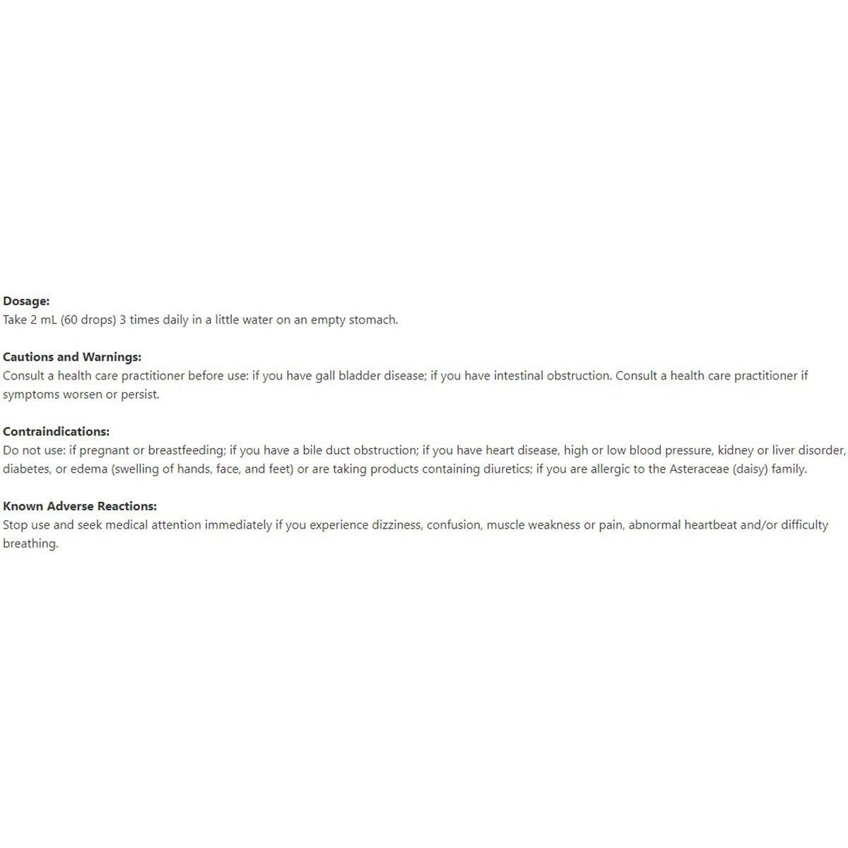 Do not use: if pregnant or breastfeeding; if you have a bile duct obstruction; if you have Cardio Health disease, high or low blood pressure, kidney or liver disorder, diabetes, or edema (swelling of hands, face, and feet) or are taking products containing diuretics; if you are allergic to the Asteraceae (daisy) family.