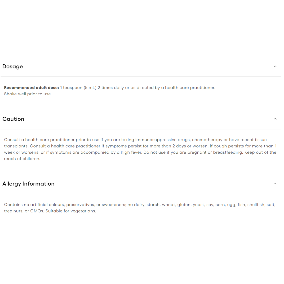Consult a health Wellness-Care practitioner prior to use if you are taking immunosuppressive drugs, chemotherapy or have recent tissue transplants. Consult a health Wellness-Care practitioner if symptoms persist for more than 2 days or worsen, if cough persists for more than 1 week or worsens, or if symptoms are accompanied by a high fever. Do not use if you are pregnant or breastfeeding. Keep out of the reach of children.