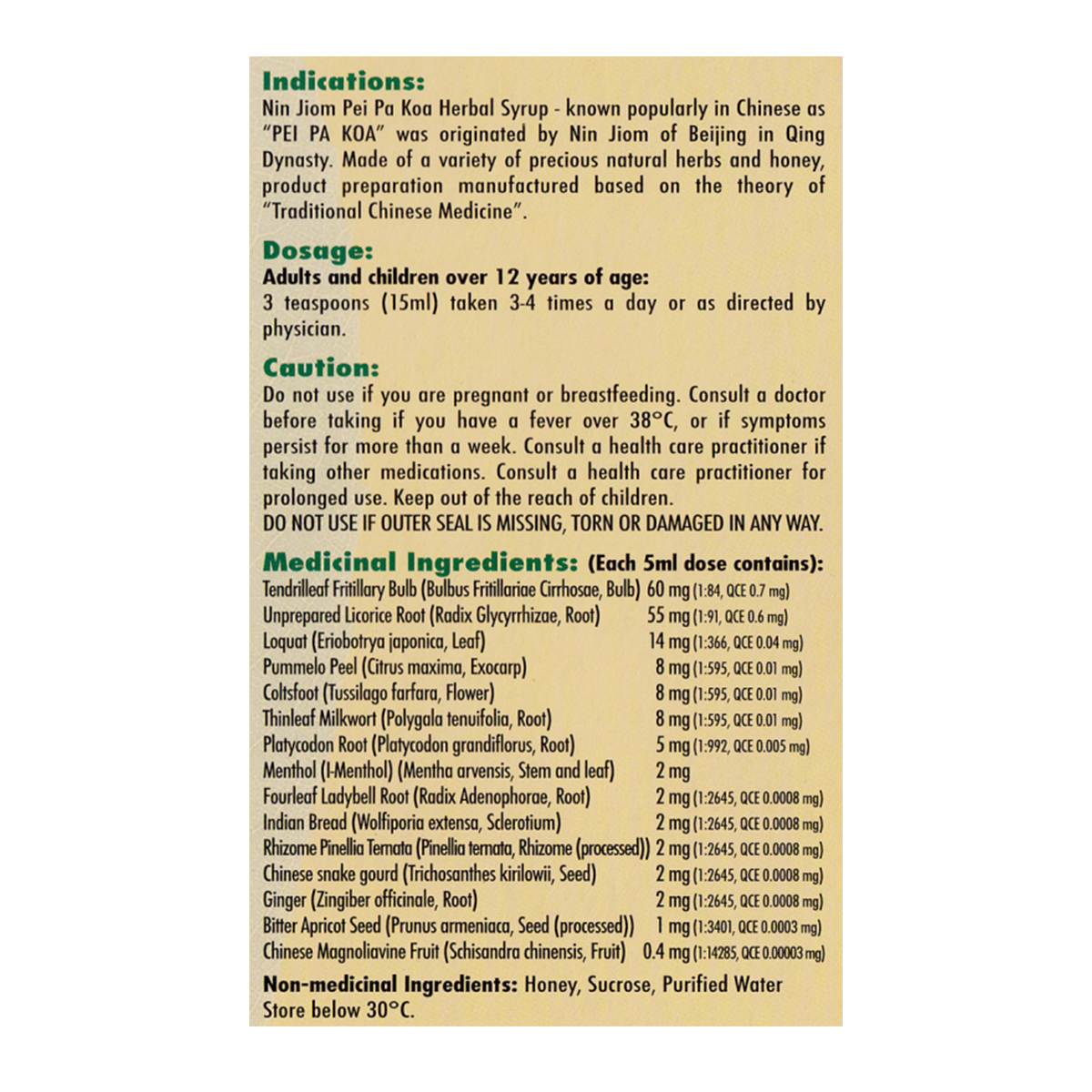 Nin Jiom Pei Pa Koa Herbal Syrup - known popularly in Chinese as "PEI PA KOA" was originated by Nin Jion of Beijing in Qing Dynasty. Made of a variety of precious natural herbs and honey, product preparation manufactured based on the theory of "Traditional Chinese Medicine".