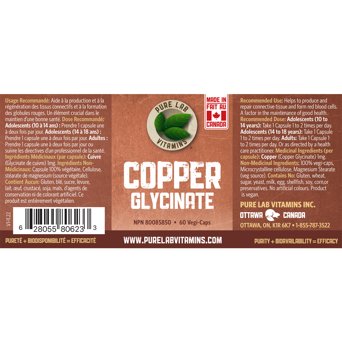 Pure Lab Vitamins Copper Glycinate 60 Veggie Caps