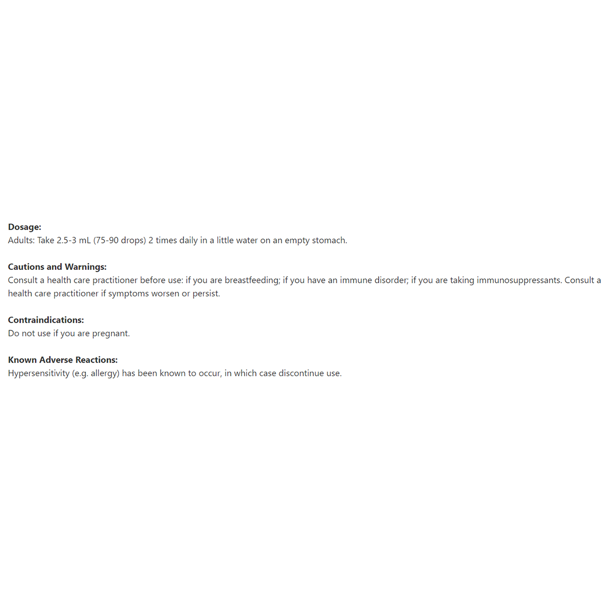 Consult a health Wellness-Care practitioner before use: if you are breastfeeding; if you have an immune disorder; if you are taking immunosuppressants. Consult a health Wellness-Care practitioner if symptoms worsen or persist.