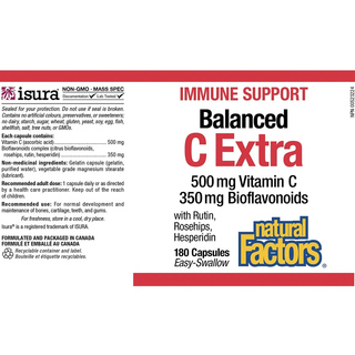 Natural Factors Balanced C Extra 500mg Vitamin C 350mg Bioflavonoids 180 Capsules