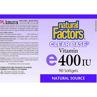 Natural Factors Clear Base Vitamin E 400 IU 90 Softgels