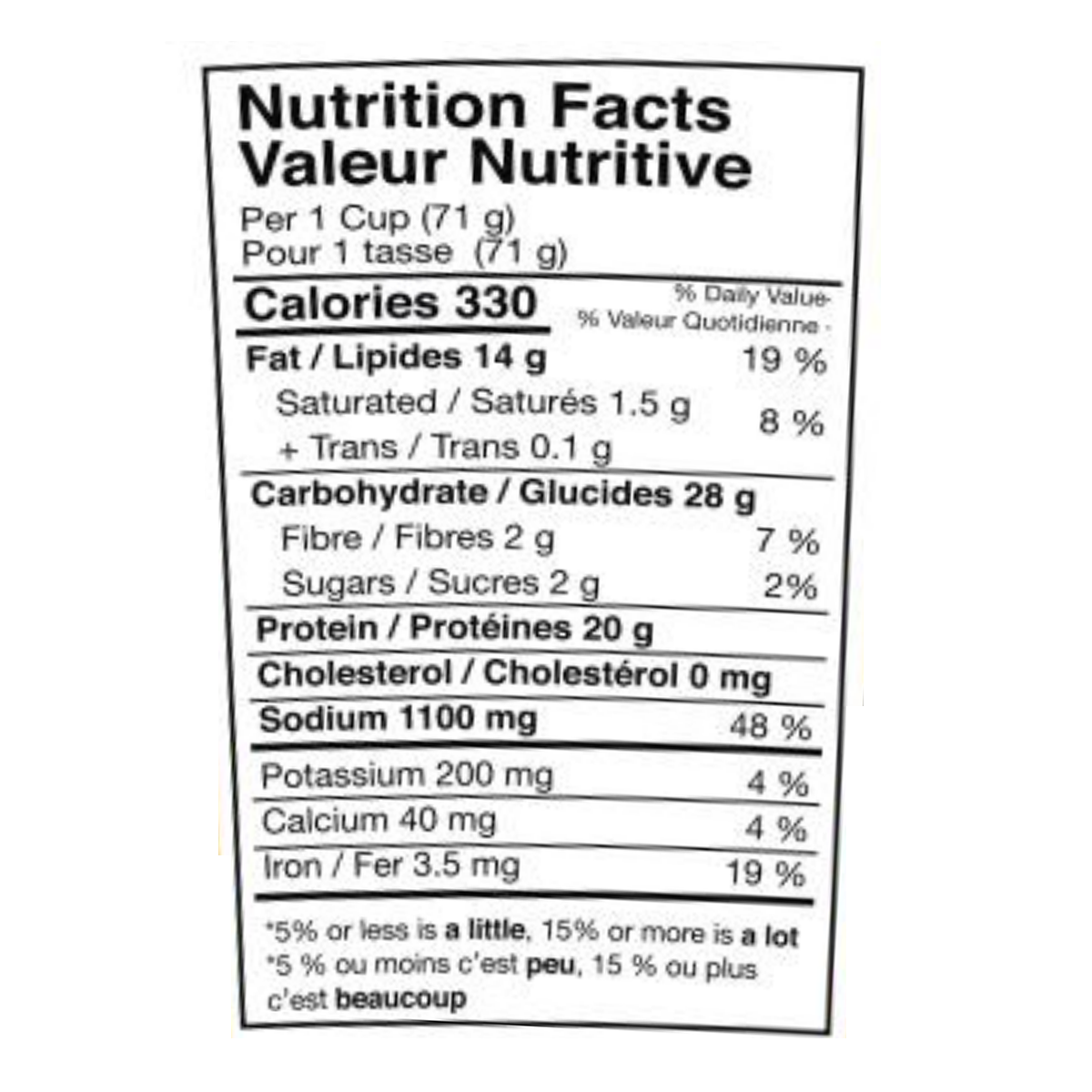 Pour 1 tasse (71 g)