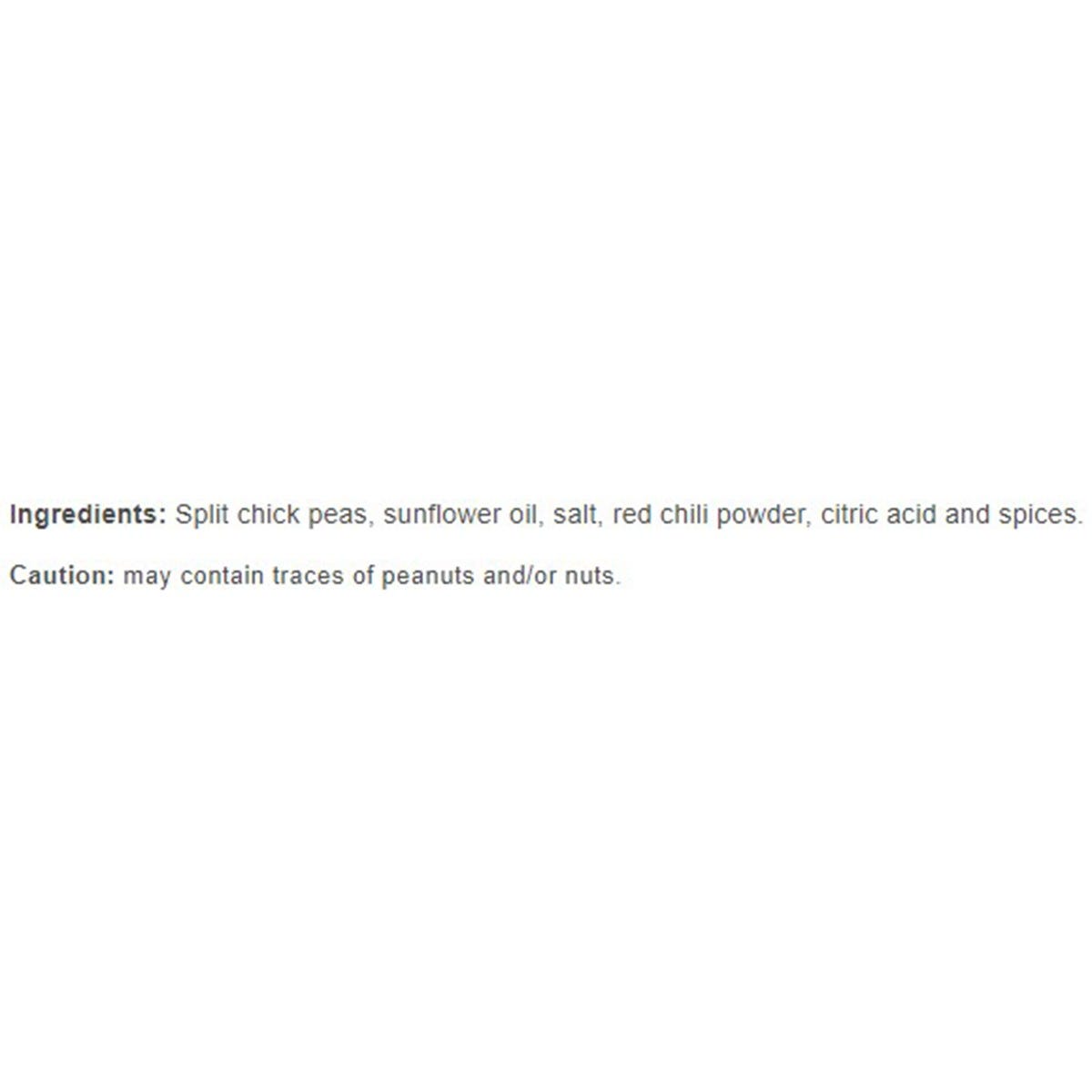 Split chick peas, sunflower oil, salt, red chili powder, citric acid and spices.