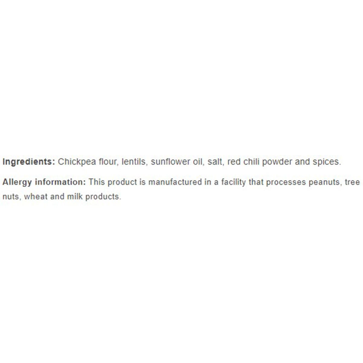 Chickpea flour, lentils, sunflower oil, salt, red chili powder and spices.
