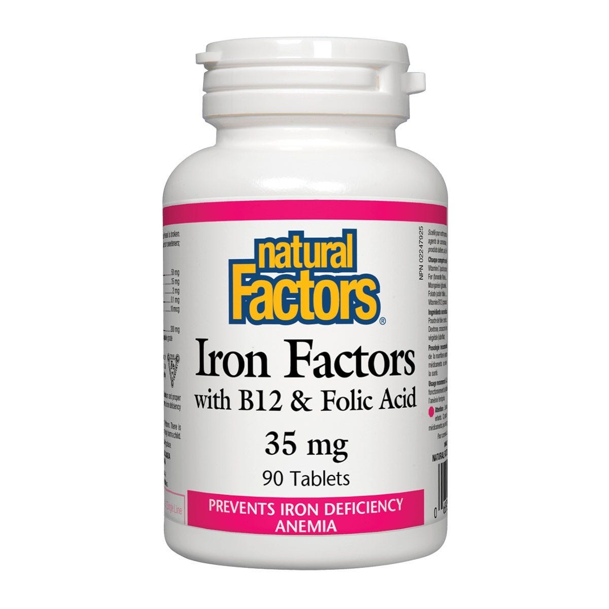 Natural Factors Iron Factors with B12 and Folic Acid helps in the formation and proper function of red blood cells, as well as in the Preventive-Wellness-Car-e of iron deficiency anemia. The vitamins and minerals in this formulation work synergistically to regulate the proper formation of red blood cells.