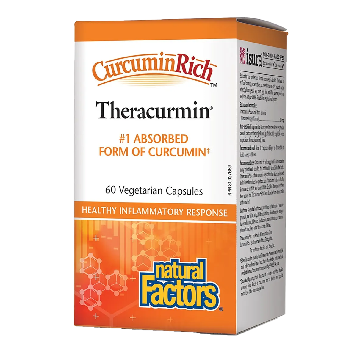 Theracumin is the answer. This advanced curcumin preparation is made using special natural technology that dramatically increases curcumin absorption compared to regular curcumin. In fact, Theracumin gives you the best curcumin absorption as demonstrated by human clinical research. It is available in regular and double-strength formulas.