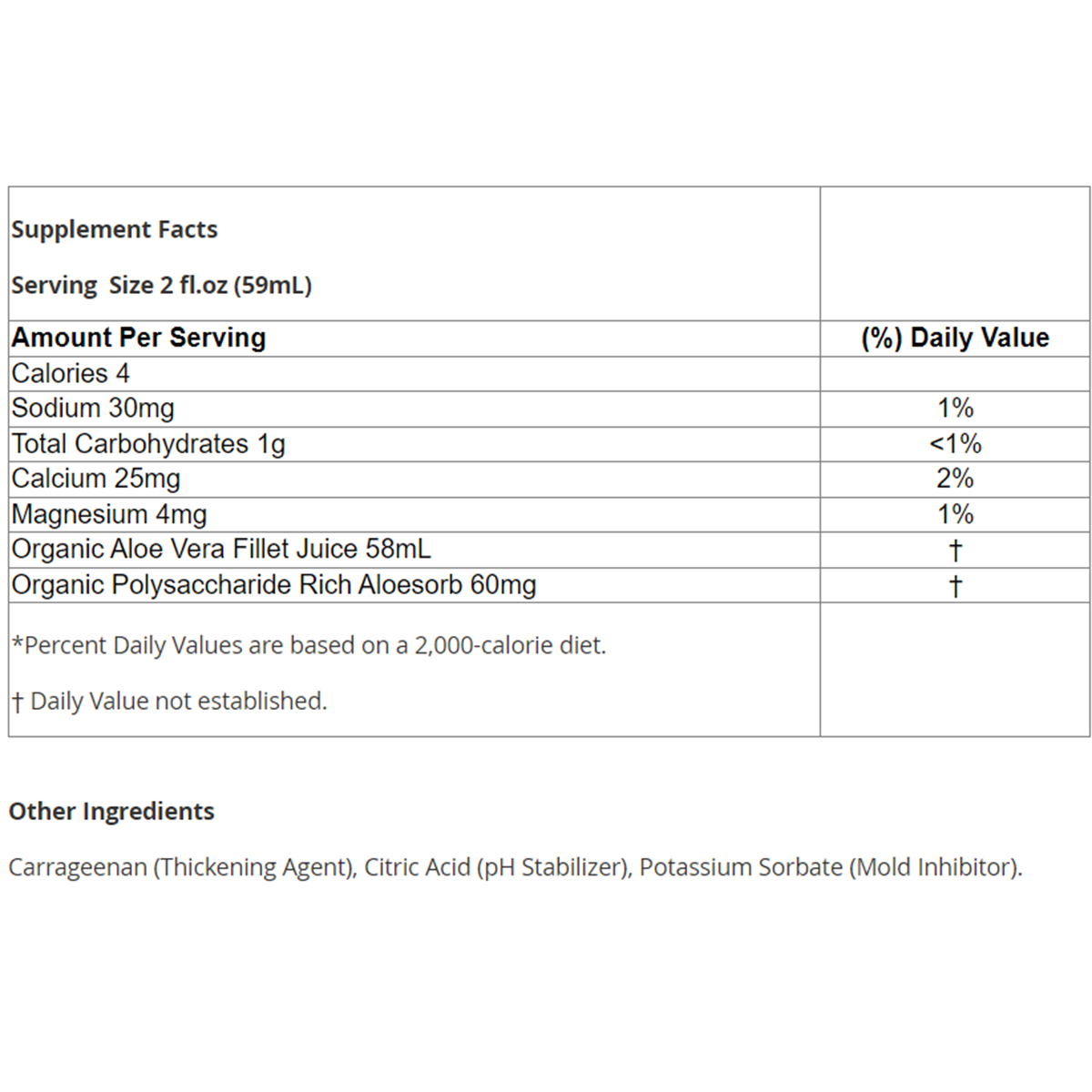 Upon opening, refrigerate immediately. Take 2 ounces (4 Tbsp) per serving, alone or mixed with a favorite juice. Up to 8 ounces daily. For those with more severe digestive issues, it is recommended that you take the aloe 15-30 minutes before each meal.