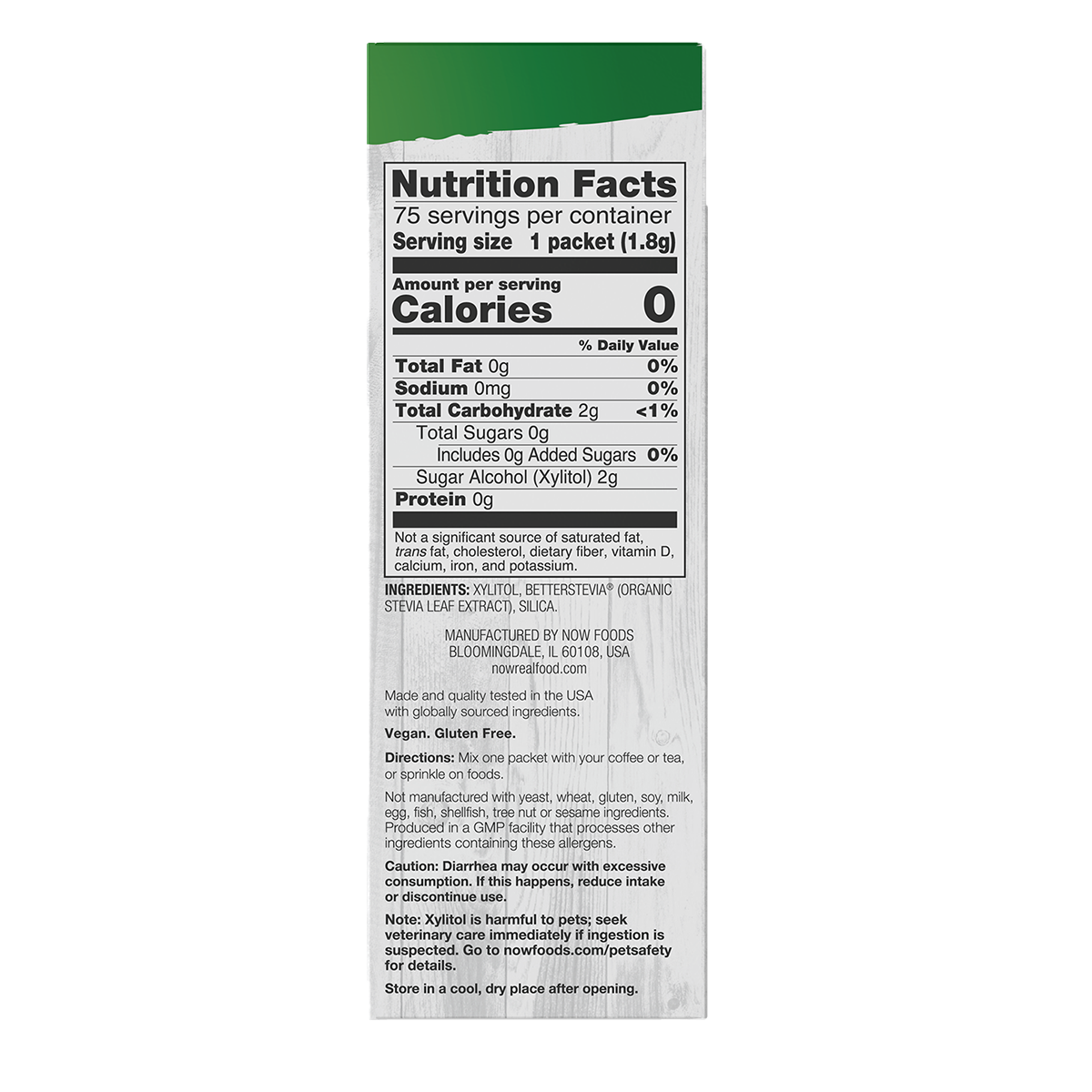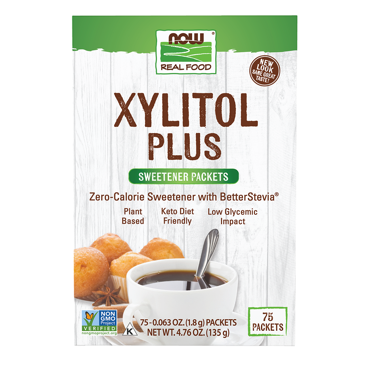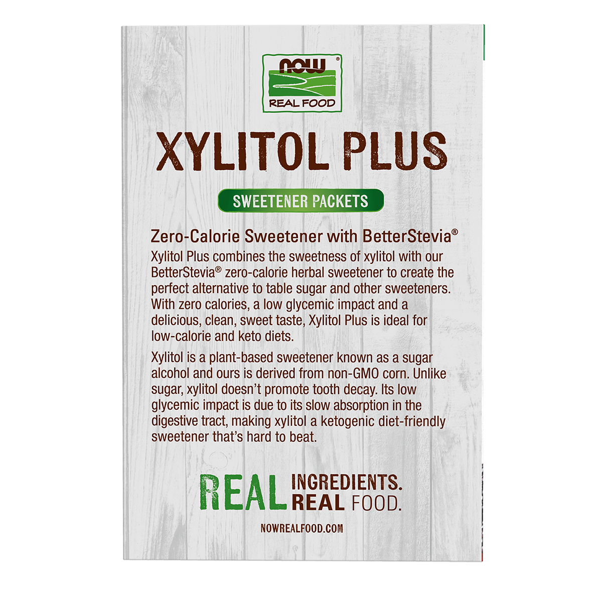 NOW Real Food Xylitol Plus combines the pleasant taste of Xylitol with BetterStevia, a zero-calorie natural herbal sweetener that complements and even enhances the sweetening characteristics of Xylitol. With NOW Real Food Xylitol Plus you get an excellent, healthy alternative to table sugar and artificial sweeteners that has 40% fewer calories than sugar and a delicious, clean, sweet taste. Xylitol Plus can be used to sweeten your favourite beverages and it’s also great in oatmeal, cereals, and other natural foods. Xylitol is a natural sweetener classified as a “sugar alcohol” that’s derived from Non-GMO corn. Unlike sugars such as sucrose and fructose, Xylitol doesn’t promote tooth decay. Even though it’s classified as a carbohydrate, Xylitol has a low glycemic impact due to its slow absorption in the digestive tract, and its caloric impact is around 1/3 lower than other carbohydrates, making it a healthy sweetener that’s hard to beat.