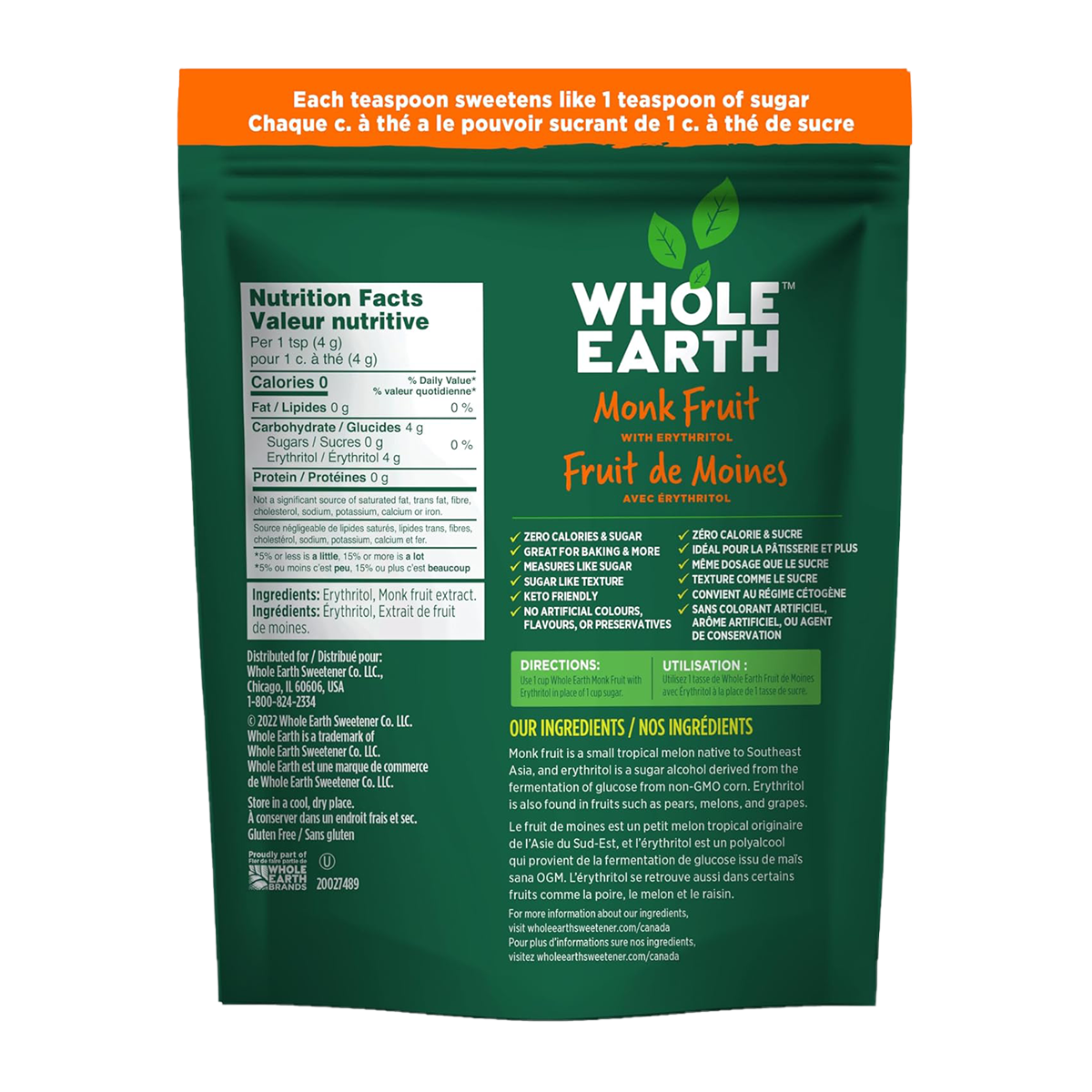 Use 1 cup Whole Earth Monk Fruit with Erythritol in place of 1 cup sugar.