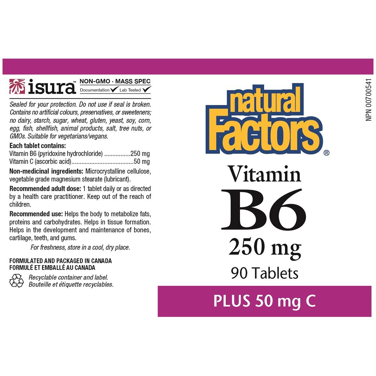 Natural Factors Vitamin B6 Plus C Assists in the development and maintenance of bones, cartilage, teeth,and gums. It Assists the body metabolize fats, proteins, and carbohydrates and Assists in tissue formation. Ideal for those who live a busy stressful life, as the vitamin C Assists maintain a healthy immune system.