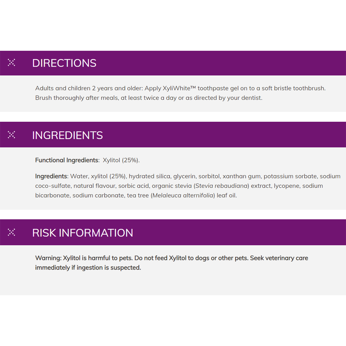 Adults and children 2 years and older: Apply XyliWhite toothpaste gel on to a soft bristle toothbrush. Brush thoroughly after meals, at least twice a day or as directed by your dentist.