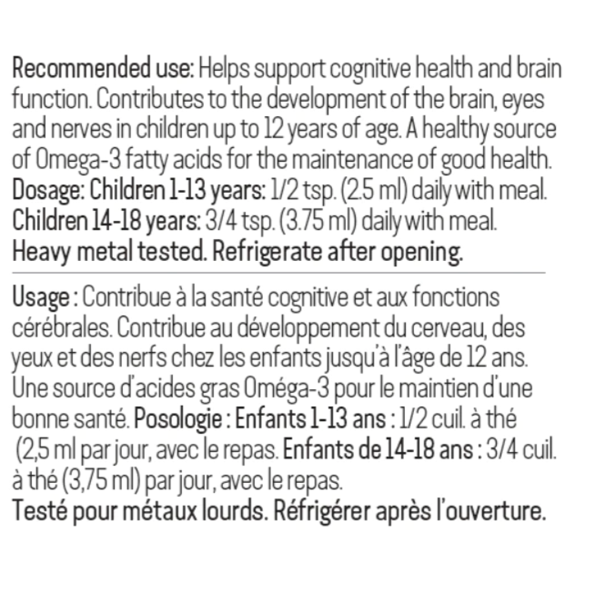 Helps Aid cognitive health and brain function. Contributes to the development of the brain, eyes and nerves in children up to 12 years of age. A healthy source of Omega-3 fatty acids for the maintenance of good health.