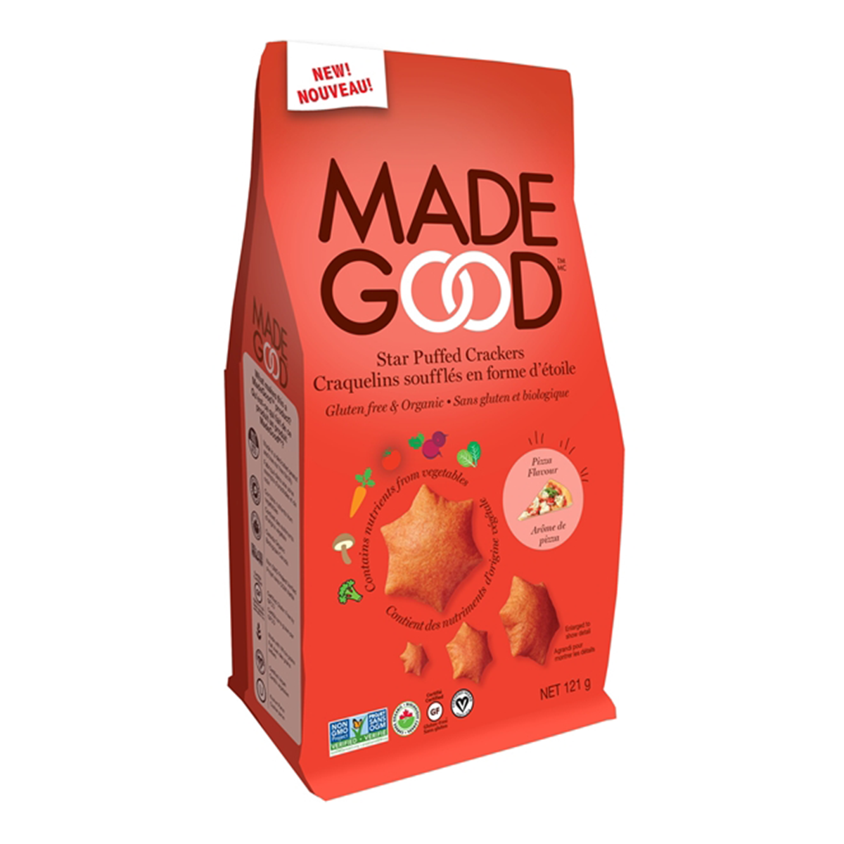 Everyone’s favorite snack now comes in tasty savory tiny crackers. Meet MadeGood Pizza Crackers, they may be stars but they taste like pizza. Baked with gluten-free, organic ingredients, these snack miracles are free from the most common allergens.