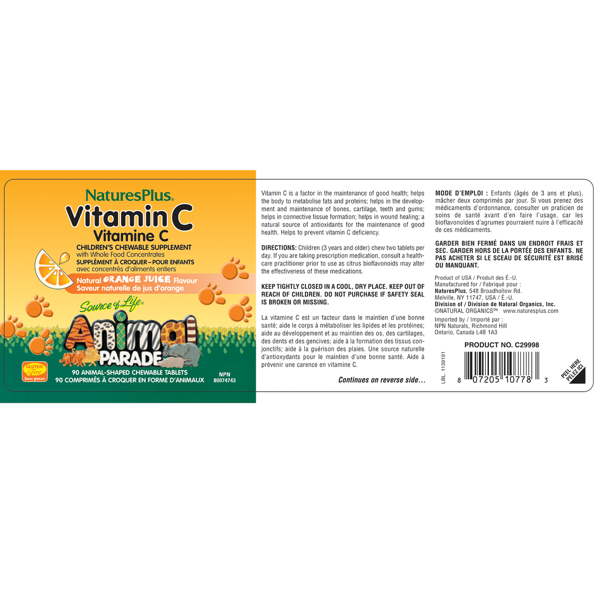 Nature's Plus Animal Parade Children's Vitamin C Orange 90 Chews